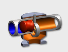 Bei dem Ringschieber handelt es sich um eine Durchgangsarmatur mit T-Abgang, bei deren Öffnung der Produktdurchgang erhalten bleibt. Eingesetzt wird er bei 2-Molchsystemen. Eine Fangeinrichtung ist integriert.
